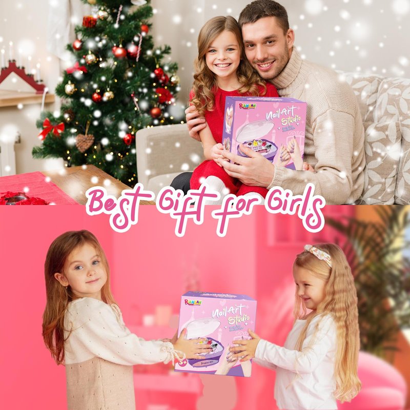 Girls Nail Polish Set, Toys for Girls Age 5 6 7 8 9 10, Nail Care Kit with Nail Polish, Nail Dryer, Fake Nails, nail Glitter, Nail Filer and Toe Separator, Ideal Birthday Gifts for Girls 5-8