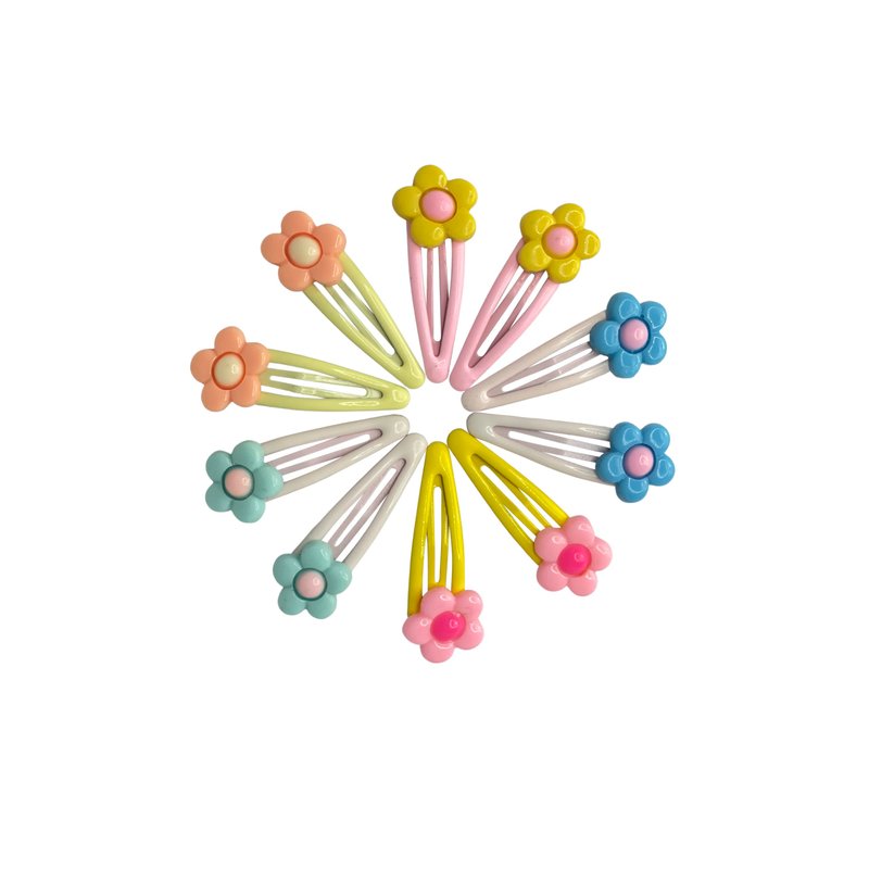 Bonsai Kids Princess Clips With Flowers: Add some beautiful colored flower clips to their hairstyle. Pink, Green, Yellow, Orange, and Blue are essential for every girl's hair accessories collection. There are endless style ideas for keeping their hair securely with the Princess clips.
