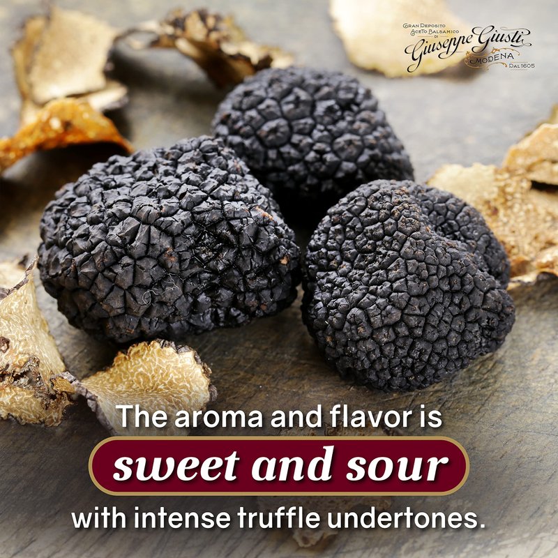 Truffle Balsamic Vinegar Reduction. This balsamic crema is made from the must of cooked sundried grapes and aged wine vinegar, it is then aged in barrels and infused with truffle. Thick and Flavorful. Creama balsamic is a thick, rich reduction perfect for upgrading your meals and pleasing your taste buds. Delight Your Senses. The aroma and flavor is sweet and sour with intense, truffle undertones. Elevate Your Dish. Perfect for garnishing, decorating, and enhancing creative and delicious recipes. Reduced balsamic vinegar is a versatile condiment with a balance between the moderate acidity and the unmistakable sweetness of the cooked must. Use our balsamic reduction glaze to complete and create great flavor contrasts in any dish, from entrees through to desserts. Top Sweet Treats. Try it on fruit tarts, cakes, pastries, parfaits, and ice cream. Finish Savory Meals. Use as an addition to boiled, scrambled and fried eggs, creamed rice/risotto, steak, and melted cheeses. No Boring Salads. With just a drizzle of balsamic cream you can change a boring salad to the one you look forward to eating. No Need to Refrigerate. Store in a cool, dry place, away from heat sources and direct light. A Thoughtful Gift for Foodies and Cooks. Giuseppe Giusti Crema makes a thoughtful gift for chefs, cooks, and foodies alike. Present this balsamic glaze reduction as a housewarming or host/hostess gift to a friend or family member and it will be treasured.