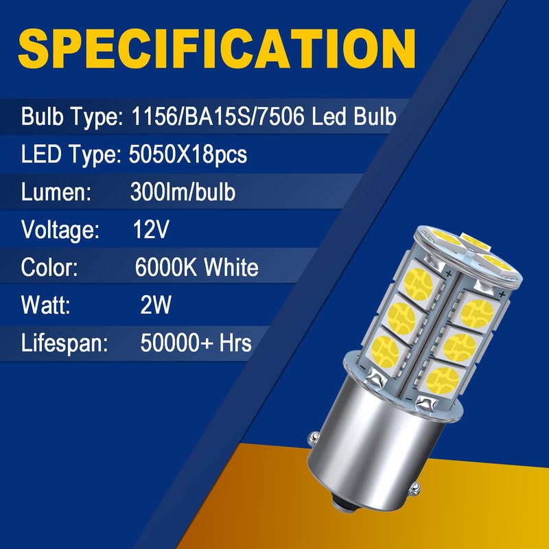 - 【Fitment】 The 1156 LED RV bulbs are compatible with 1003 BA15S P21W 1156A 1156NA 87 93 97 97A 97NA 199 631 1073 1095 1141 1195 1295 2396 3497 5007 5008 7506 12088 1295NA sockets.