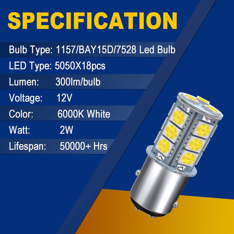 - 【Fitment】 The 1157 LED Car bulbs are compatible with BAY15d 7528 2057 2357 3496 1157A 1016 1034 1152 1154 1158 1493 2057 2357 7528 12499 12594 P21/5W sockets.