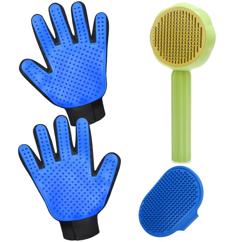 - [Perfect Grooming Combination]: 1pcs Dogs/Cats Brush,1pcs Dogs/Cats Grooming Glove,1pcs Dogs/Cats Bath Brush.The grooming kit can be used short, medium and long, thick, thin and curly haired pets,let your pet’s coat soft and shiny.