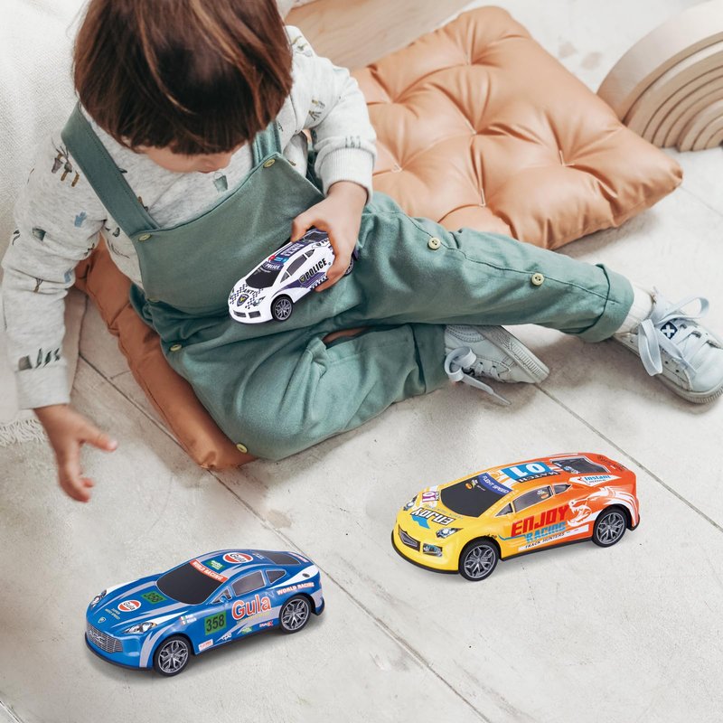 Small racing car perfect size cars for 3-7 year old ,they are very durable and your little babies will love them.The size is bigger than the normal cars and this is the best thing about them. These are lightweight so you could easily picks them up and plays with them.
