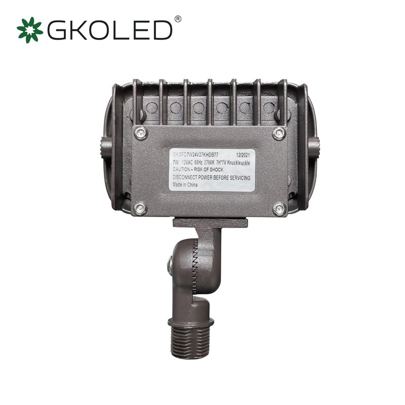 GKOLED 7W Outdoor LED Low Voltage Landscape Lighting Flood Light, 2700K, 550Lumen, 9-15V AC/DC, 1/2" Adjustable Knuckle Mount