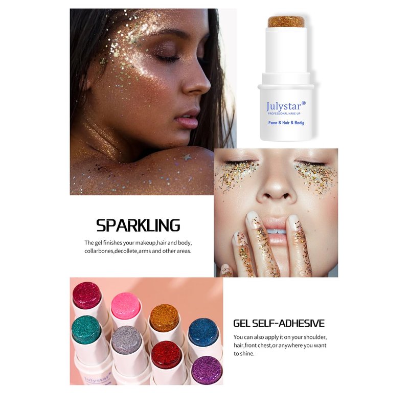 - Mermaid Sparkly Face Glitter:This face glitter stick has shimmery and beautiful color with fine glitter, a little goes a long way with great shimmer shine,dry fast and no smudging,the glitter not sticky or cracked when apply on your skin,make your night at party more sparklier.