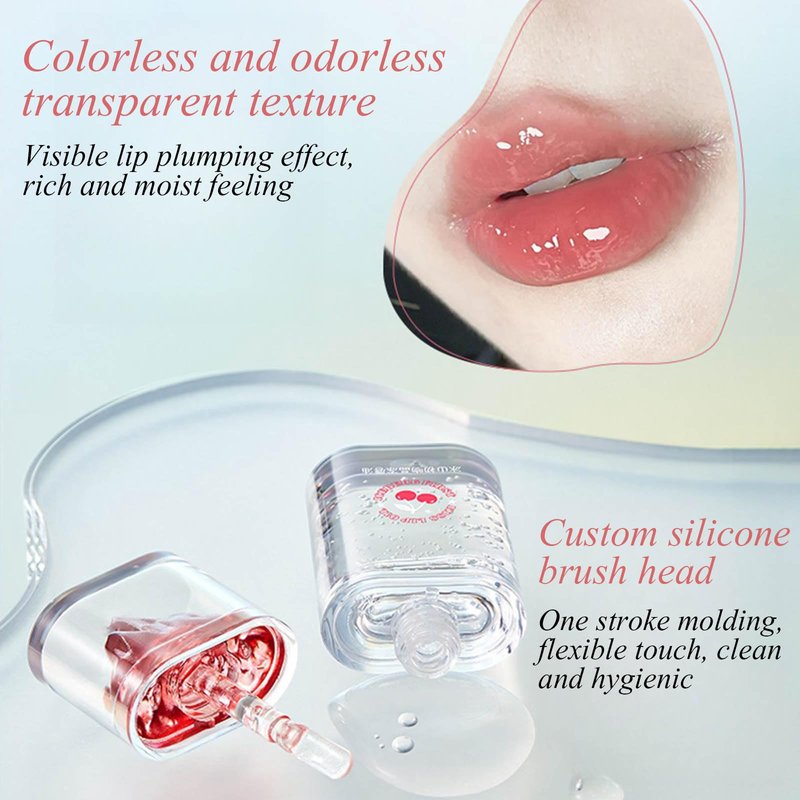 Glacier Lip Oil Silicone Brush Head,Moisturizing Lip Plumper Cherry Lip Glaze,Nourishing Long Lasting,Repairing Lightening Lip Lines for Lip Care and Dry Lips(Clear)