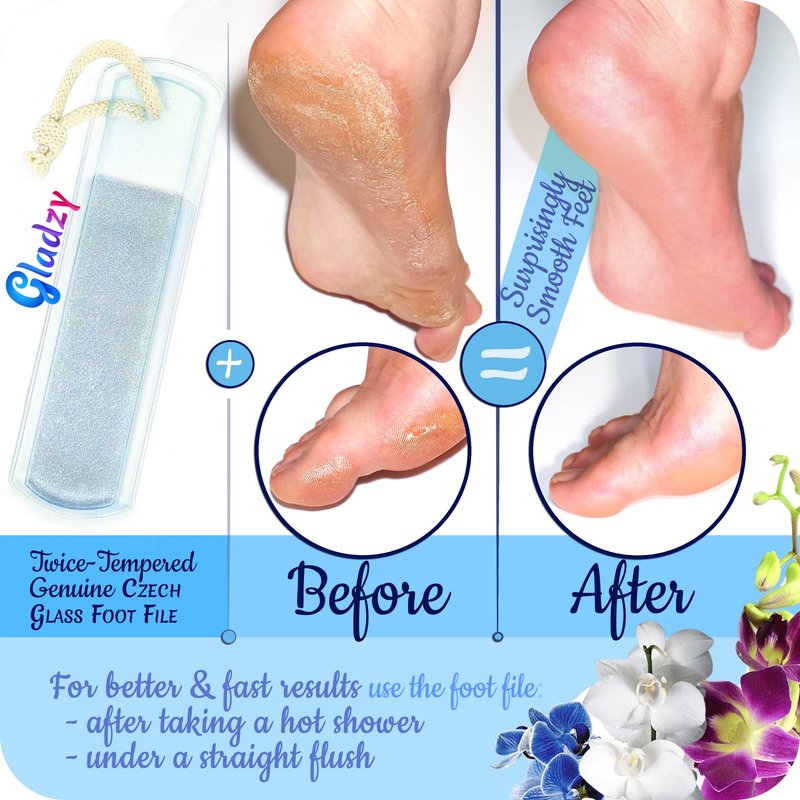 GLADZY® Genuine Czech Glass Nail File Set - Callus Remover Foot Rasp, Double Sided Different Grit Surface, Professional Manicure & Pedicure Tools, Premium EU Quality
