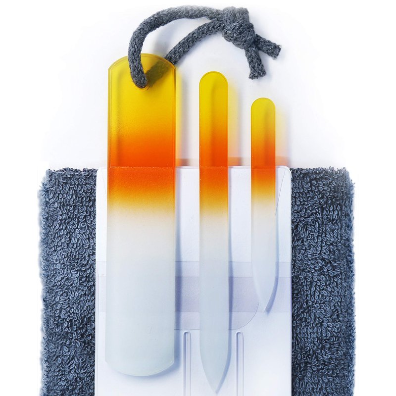 - PREMIUM QUALITY – Bohemian crystal glass nail files kit is double sided and made of premium quality Czech crystal glass. The grit board is permanently chemically etched (acid engraving) on both sides of the glass, so it will not degrade over time and will a lifetime.