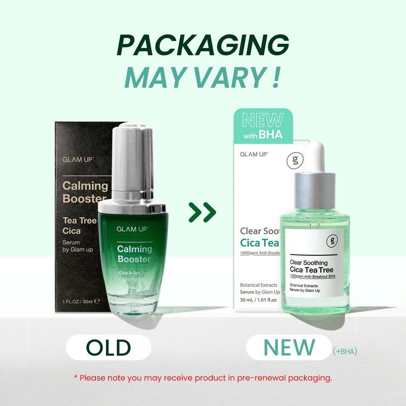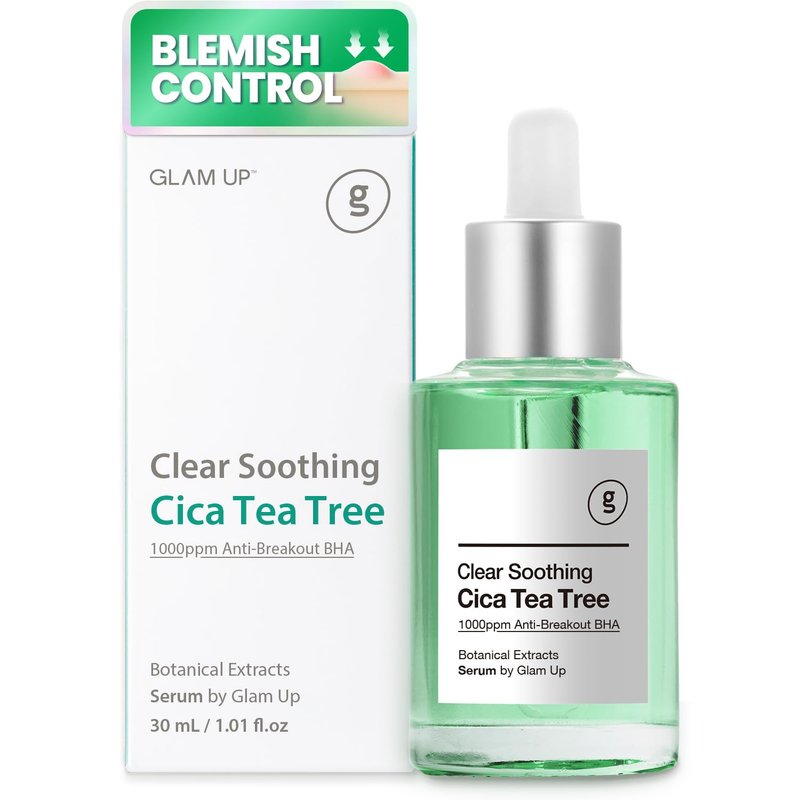 GLAM UP CICA Double Shot With HYALURON+BHA Calming Booster Acne Treatment with Centella Asiatica, Tea Tree Oil & Niacinmid for Acne Breakout, Blackhead Treatment, Sensitive Skin Care 30ml(1.12 Fl Oz)