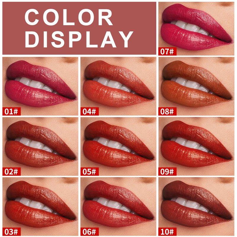 - LPSTICK SET:Our 10 colour lipstick set! Velvet Matte Lipstick in nude matte deep moisturising. Whether you're going for a natural everyday look or a bold, exaggerated look, these lipsticks have you covered.