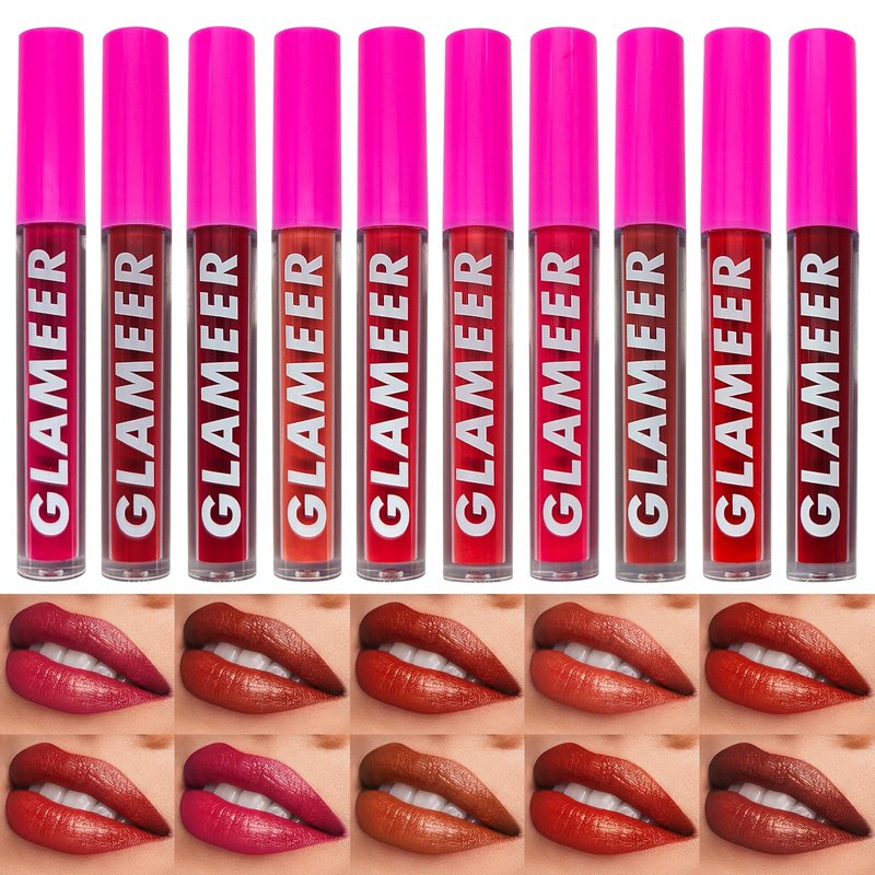 - LONG LASTING NON STICKING: 10 Colour Velvet Liquid Lipstick Set, the most popular colour in full size lip gloss. Glamorous matte, long-lasting and waterproof, non-sticky and colourfast.This is a non-fading lipstick that stays on all day when applied and left to dry, and won't come off when you drink or eat.