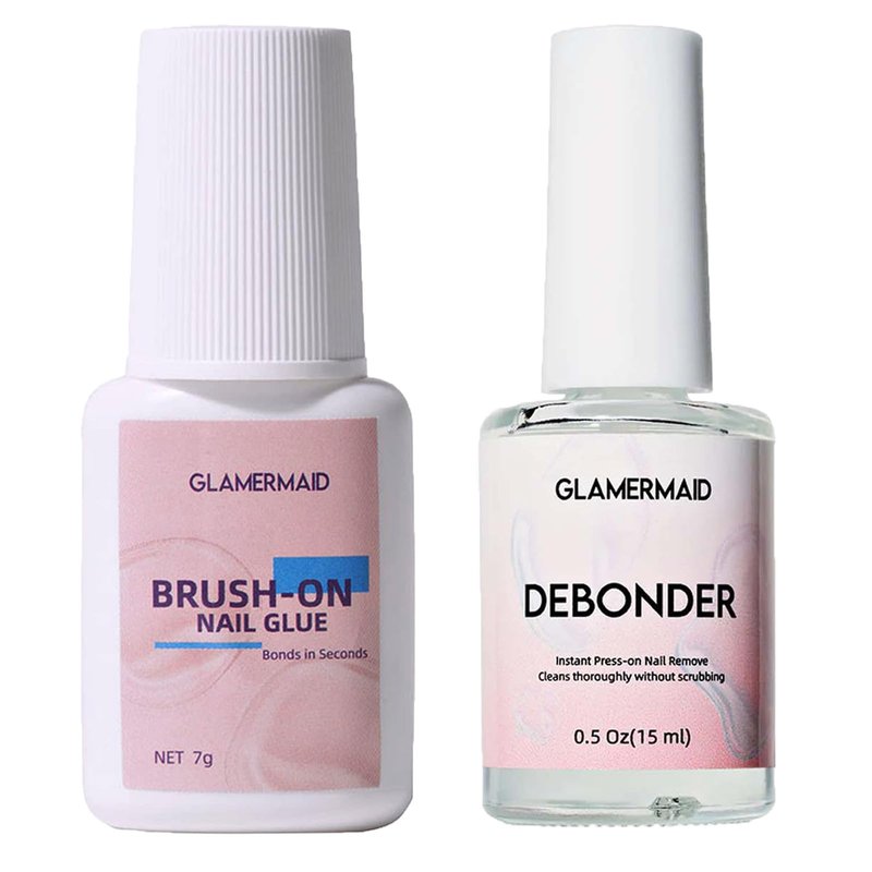 GLAMERMAID 2Pcs/Set Super Strong Nail Glue Remover for Press on Nails with Nail Glue Debonder Kit, Nail Glue with Brush for Nails Tip & Nail Glue Remover Glue off for Acrylic False Nails