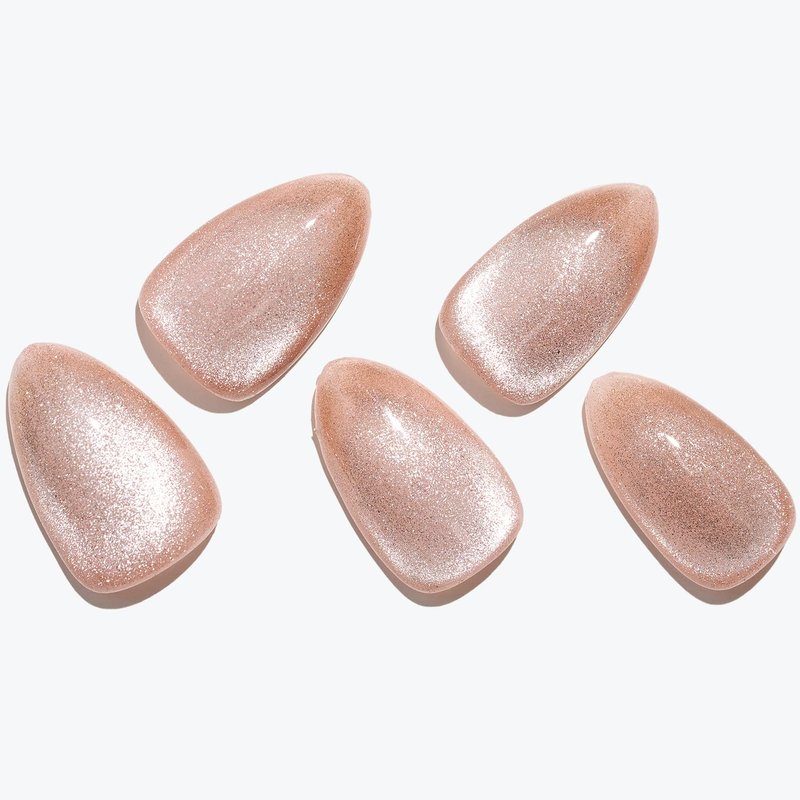 GLAMERMAID Nude Pink Magnet Cat Eye Press on Nails Short Almond, Handmade Jelly Gel Fake Nail Kit, Aurora Ombre Glitter Magnetic Glue on Nail Stiletto, Normal Medium Oval Stick on False Nail for Women