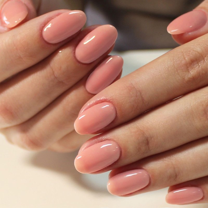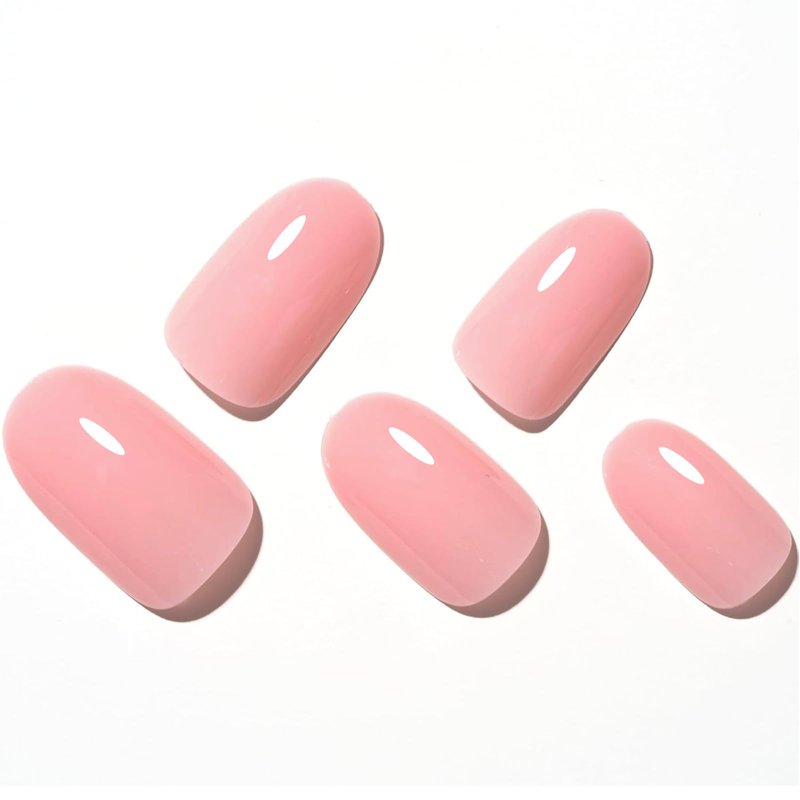 GLAMERMAID Nude Pink Press on Nails Short Oval, Pink Peach Blossom Medium False Nails with Adhesive Tabs, Pure Glossy Gel Oval Glue on Nails for Women, Reusable Acrylic Round Stick on Fake Nails Set