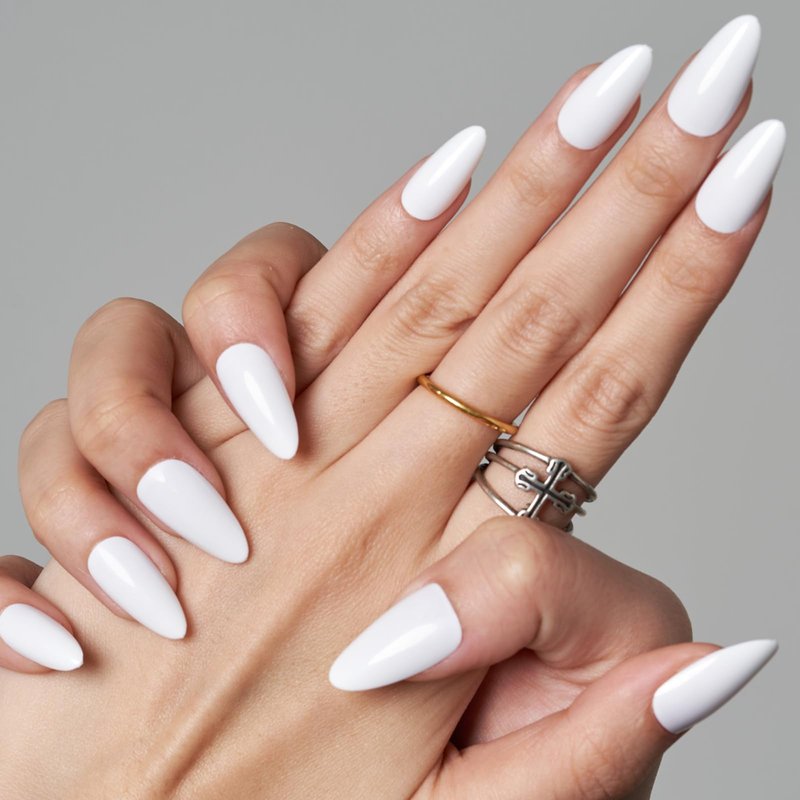 GLAMERMAID Press on Nails Almond?White Medium False Nails Press ons?24Pcs Glossy Full Cover Glue on Nails?Reusable Acrylic Stick on Nails Tips Manicure Gift for Women Girls