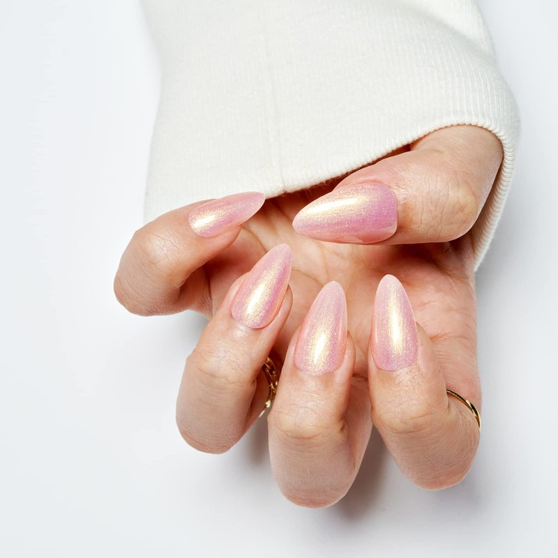 GLAMERMAID Press on Nails Medium Almond - Handmade Gel Nails | Pink Golden Glitter Galaxy Fake Nails Shinny Short Stiletto Shimmer Acrylic False Nail Kits Stick Glue on Nails for Women Party Nails