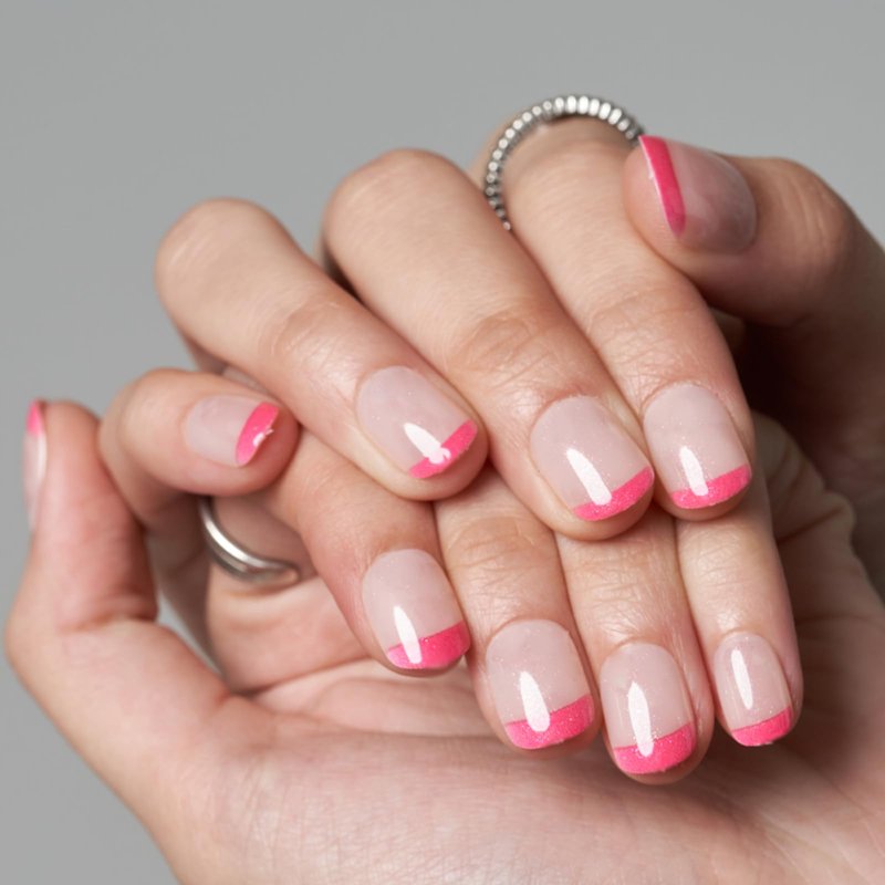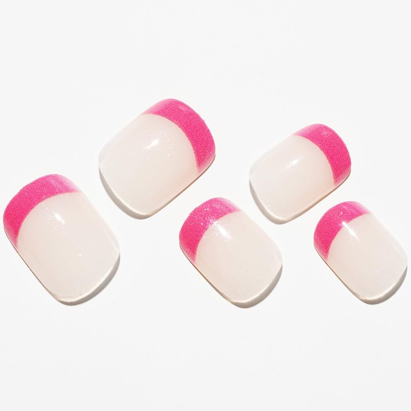 GLAMERMAID Press on Nails Short Squoval,Hot Pink French Tips False Nails with Design,24 Pcs Extra Short Glue on Nails UV Glossy Reusable Acrylic Stick on Nails for Women Girls Gift