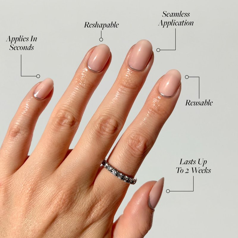 - Natural Short Round Nails - This natural look nail features a semi-transparent base and a minimalist silver line design.Plus, the short round shape is perfect to dress up or down!