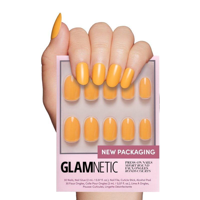 Glamnetic Press On Nails - Sunset Orange | Opaque Trendy Orange Short Round Fake Nails, Reusable | 12 Sizes - 30 Nail Kit