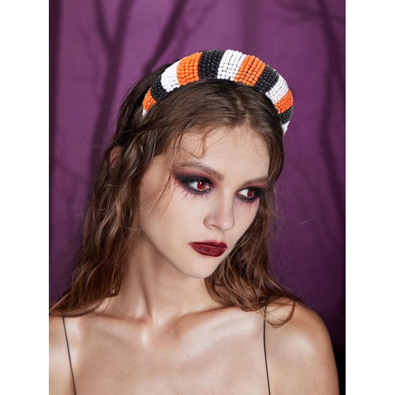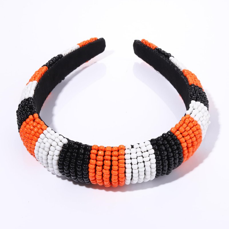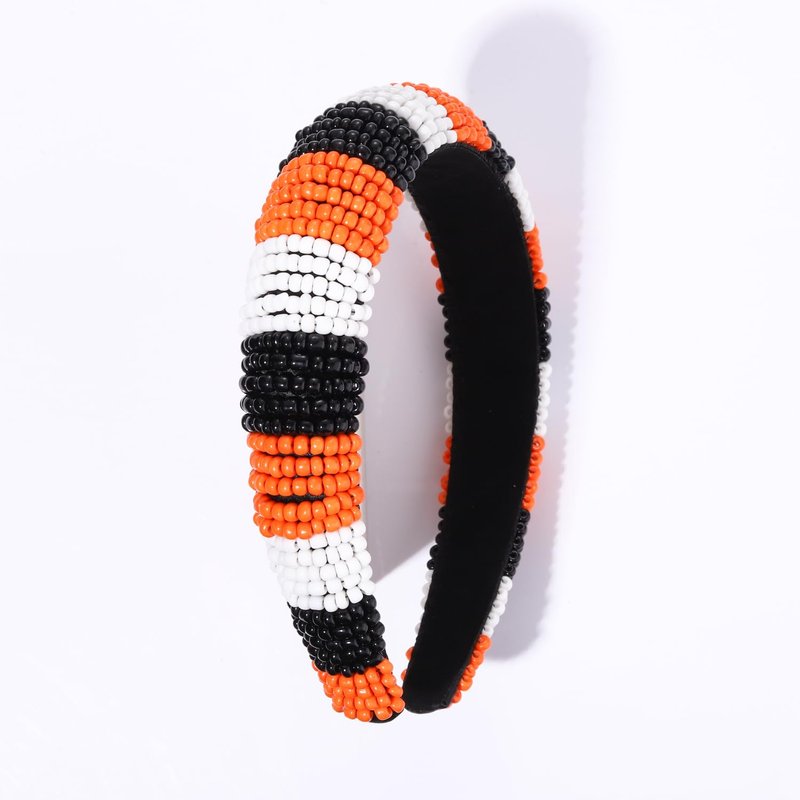 GLBCC Halloween Headband for Women White Black Orange Beaded Headband Headpiece Halloween Costume Party Favors Headband Hair Hoop Accessories (black white orange headband)