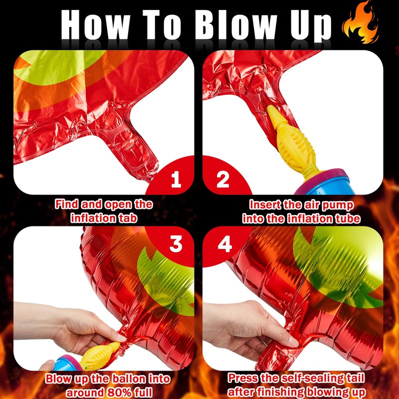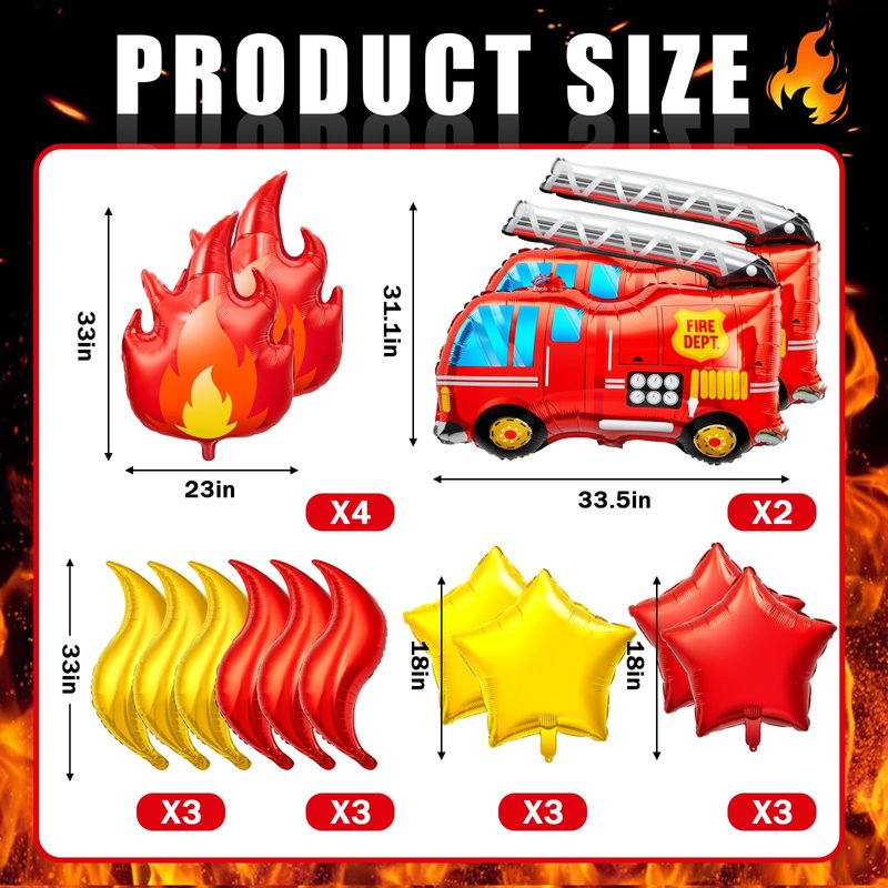 - Impressive Size for Display: Flame balloons measure 32 x 22 inches, fire truck balloons measure 34 x 31 inches, fire balloons measure 24 inches, and star balloons measure 18 inches for eye-catching impact