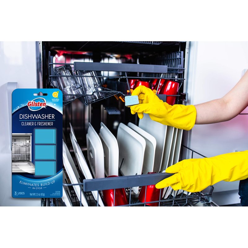 - Glisten Dishwasher Cleaner and Freshener works during your normal wash cycle