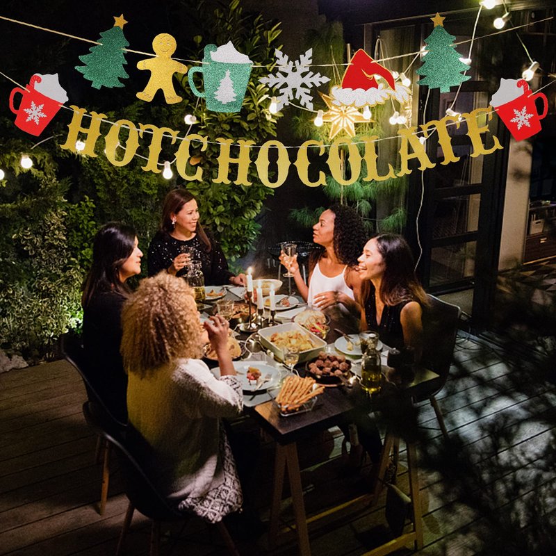 Glitter Christmas Hot Chocolate Banner with Christmas Tree Snowflake Santa Hat Hot Cocoa Bar Garland Banner for Wintertime Christmas Theme New Year Holiday Party Sign Decorations Supplies