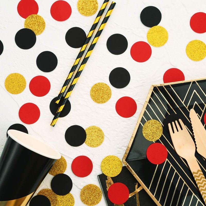 - Confetti 300pc circle dots confetti, gold glitter,black,red dots confetti,each dots 1.2’’ in diameter,no glitter falling off,high quality craft paper confetti