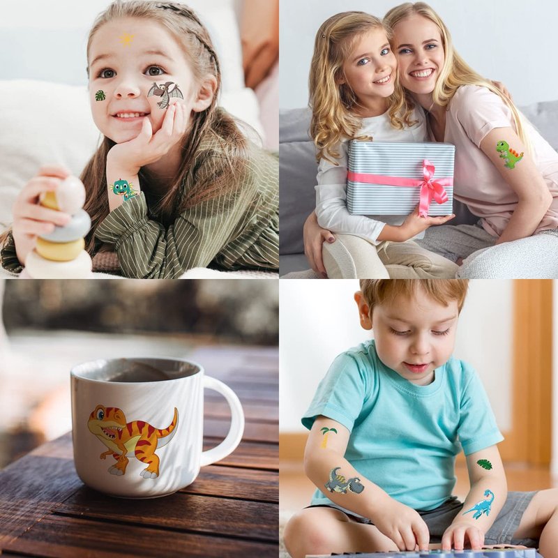 - Cool Gift For Kids: Popular hit with the kids. These silver glitter Dino tattoos are perfect for a dinosaur birthday party! You can choose the pattern you like and create your own style.