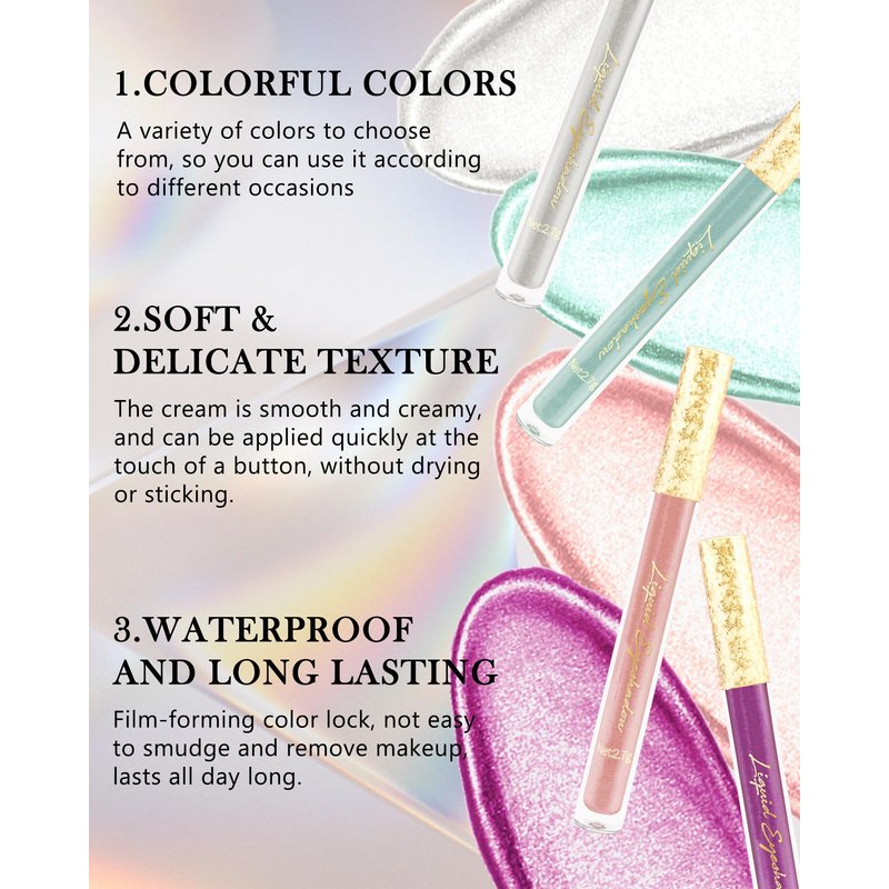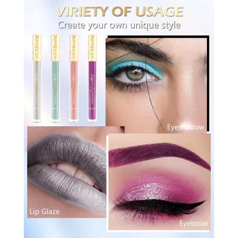 - MULTIFUNCTIONAL LIP STICK - Lightweight light reflective liquid lipstick that add sheen to your lips. Use it on bare lips or over your favorite lipstick as lip top coat to get a sparkly finish. It can also be used as an eye shadow or highlighter, on top of your eye or face for a bold and colorful look!