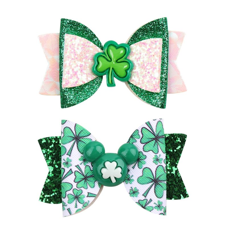 Glitter St Patrick's Day Hair Bow Clips Girls Green Shamrock Hair Barrettes Accessories Kids Irish Lucky Clover Party Costume Supplies