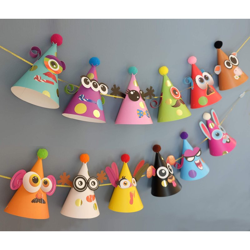 Simple Steps to Create 24 Fabulous Kids Party Hats to Wear or Decorate. Whether it is a rainbow theme, monster theme or animal theme party, you will instantly liven up your party setting with the addition of these colorful hats.
