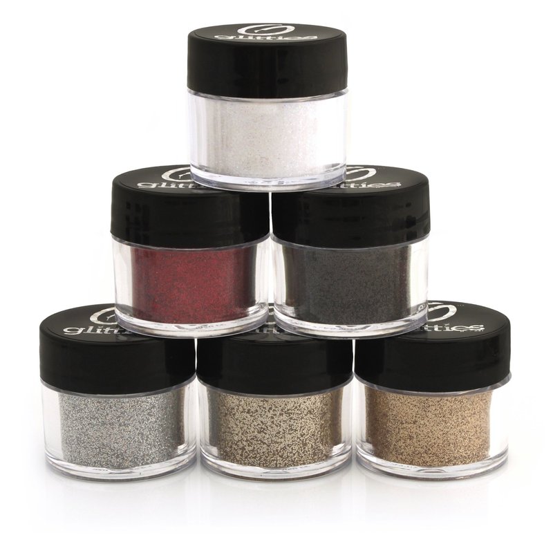 GLITTIES - Neutral Cosmetic Grade Glitter Powder Kit (6 Pk) - A Mix of Ultra Fine Glitter Powder Safe for Skin! Great for Makeup, Tattoos, Face, Lips, Soap, Lotion, Nail Art - (10 Gram Jars)