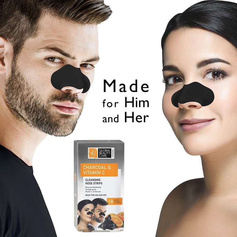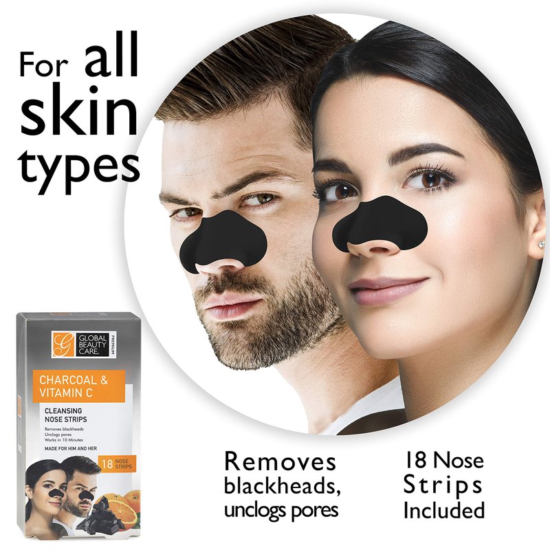 Global Beauty Care Premium 18 Nose Cleansing Strips of Activated Charcoal & Vitamin C Nose Strips For Blackheads Removal Charcoal Blackhead Remover Strips - 18 Ct