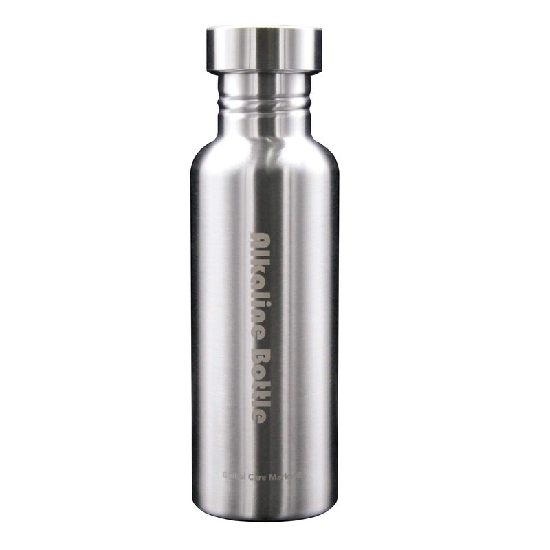 - The alkaline water bottle is made of stainless steel and contains a filter that uses all-natural stones and mineral elements to alkalize, purify and energize the water in the bottle.
