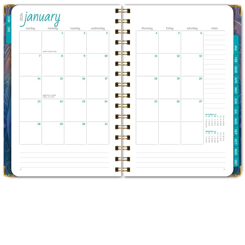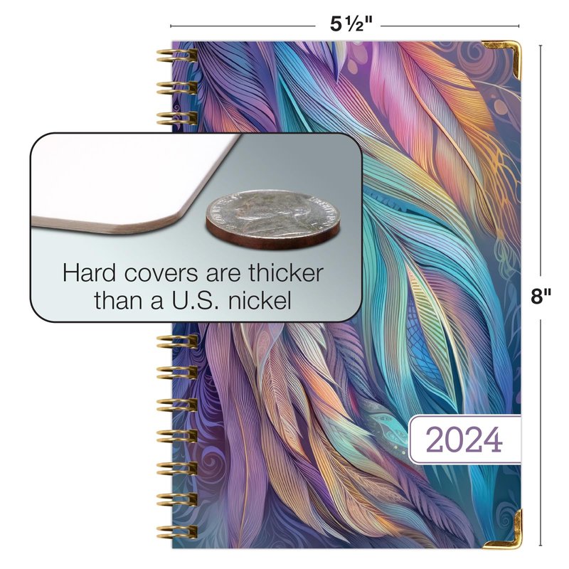 Global Printed Products HARDCOVER 2024 Planner: (November 2023 Through December 2024) 5.5"x8" Daily Weekly Monthly Planner Yearly Agenda Bookmark, Pocket Folder & Sticky Note Set (Pastel Peacock)