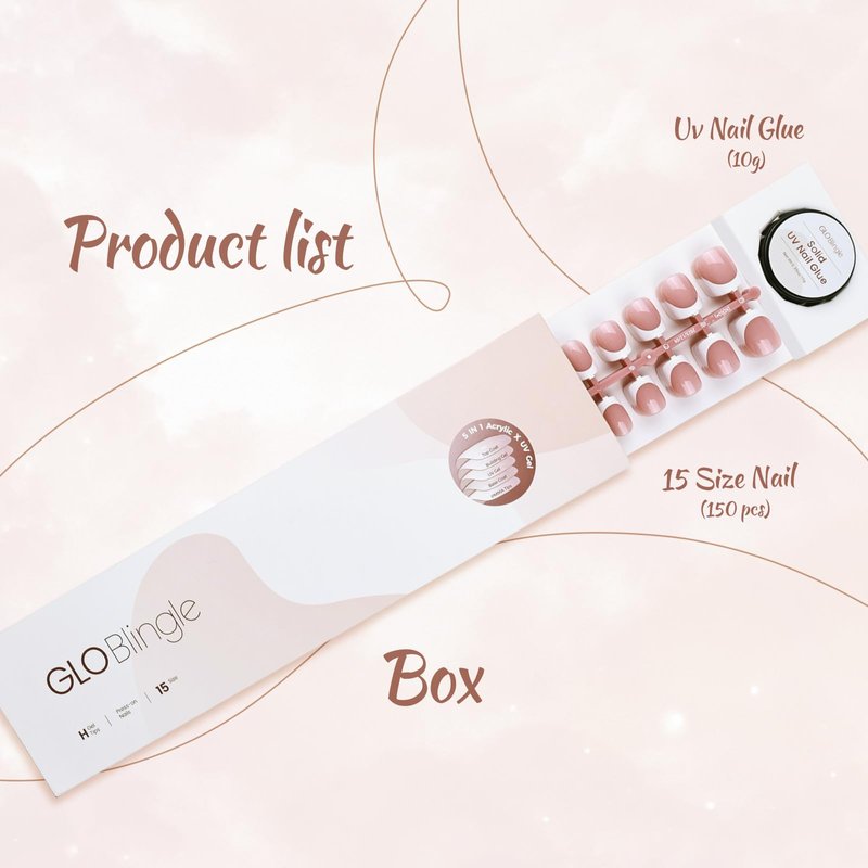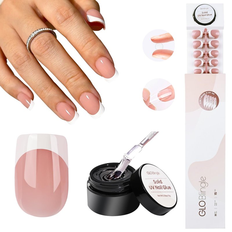 - 【What You Get】: Globlingle 5 IN 1 acrylic x uv gel press on nail short square tips kits 150pcs french white gel nails tips and 10g uv solid nail glue, you'll easily achieve a salon looking french tips press on nails nude pink gel nail polish mani at home in minutes.