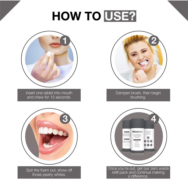 GloBoid Charcoal Toothpaste Tablets with Fluoride, Zero Waste Toothpaste Bits, Eco Friendly Toothpaste Tabs, Plastic Free Toothpaste Bites - 1 Month Supply - 62 Count - Mint