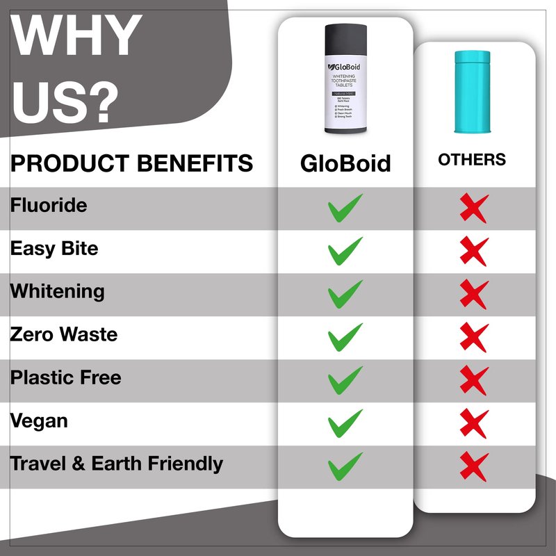 We wanted to do something about it. Introducing the toothpaste of the future, only the best for your mouth and our planet. We are GloBoid, a UK based company committed to making a difference worldwide, hence the name.
