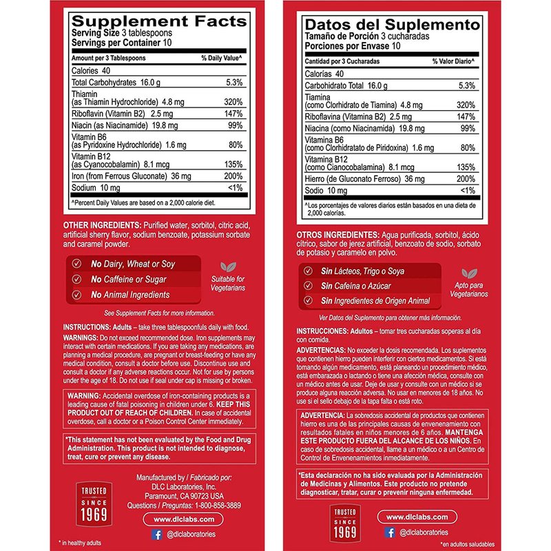 Globulo Rojo Iron Supplement - Liquid Dietary Supplement with High Potency Iron & B Vitamins (Vegan), 16 FL OZ (473 mL)
