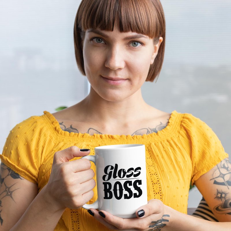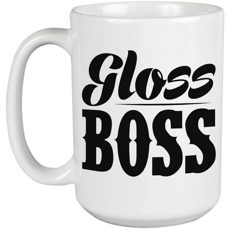 Gloss Boss, Lip Gloss Lover, Collector or Enthusiast Quote - Beauty Themed Merch for Makeup Artist or Cosmetologist, Gift for Makeup Lovers & Beauticians, White Mug 15oz