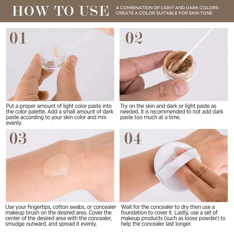 - EASY-TO-USE - This tattoo concealer is advanced yet isn’t complex to use. Simply mix the amount of the light and dark color paste according to how it matches your skin color to get the perfect skin coverup