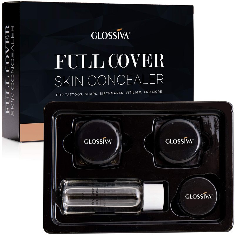 Glossiva Tattoo Concealer - Skin Concealer - Waterproof - For Dark Spots, Scars, Vitiligo, And More - Tattoo Cover-Up Makeup - Use on Body, For Legs, for Men and Women (248.9g)