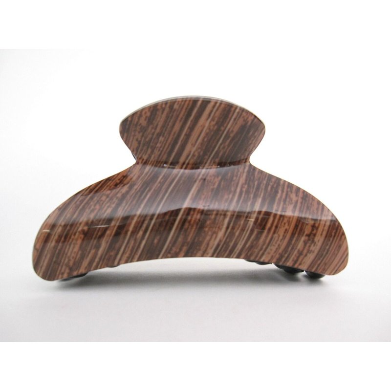 Glossy brown hair claw clip with wood grain effect for thick hair