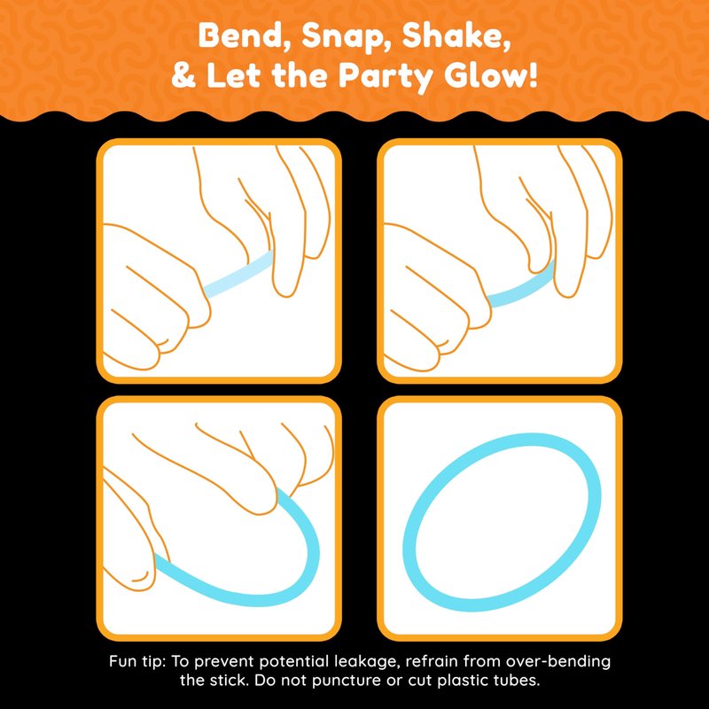 Includes PREMIUM quality 8" glowsticks to form glowstick bracelets and necklaces. Long Lasting, 6-8 Hours of GLOW. Perfect for Birthday Parties, Party Favors, Camping Trips, Halloween, Glow Party, Concerts, Weddings, School Classroom Rewards, Treasure Box, Carnival Prizes, Pinata Toys, Bath Tub Fun, Bars, Family Reunion, Rave Parties, Festivals, Sleepovers, and More!! CHILD SAFE: Non-Toxic, waterproof and CPSIA Compliant. ISO9001:2015 certified. Great Value. Awesome Glow Party Supplies and Craft Ideas - Mix of different light sticks are best party gifts for kids, parents and friends to build crafts like flowers, glasses, balls, bracelets necklace. Unlimited Possibilities - The light up / glow toys expands imagination of you and kids, offering unlimited party ideas and fun possibilities. Easy to use: Bend entire of length of light stick at once and shake until the entire stick is glowing.