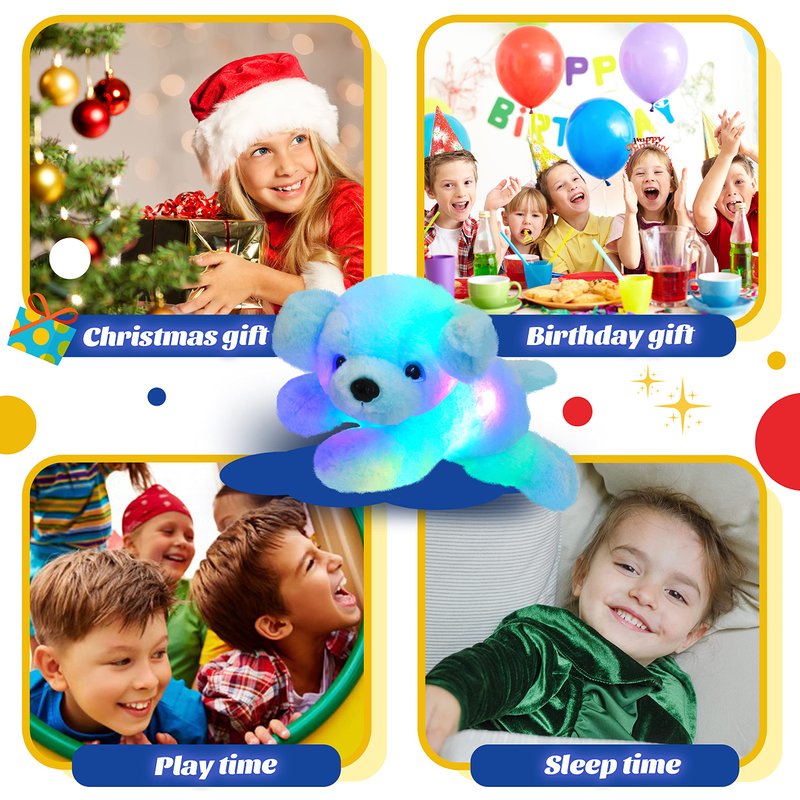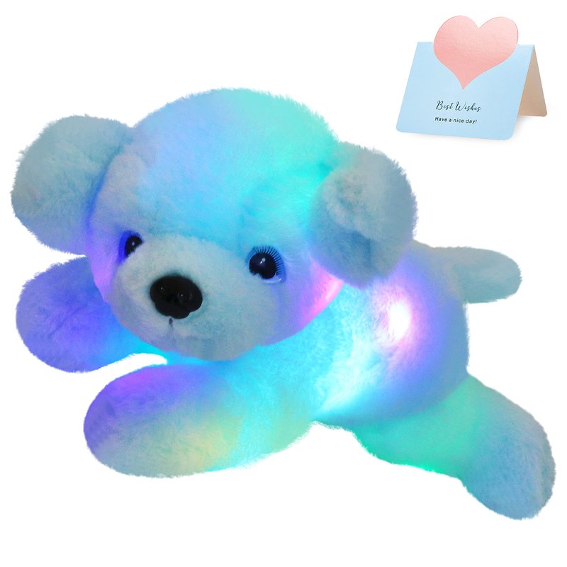 Blue Light up Puppy Dog Stuffed Animal Soft Plush Toy Pillow with LED Night Lights Glow Bedtime Pal Children's Day Birthday Gifts for Toddler Kids