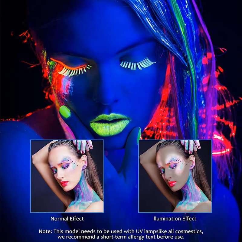• Versatile Uses: Perfect for Halloween makeup, parties, festivals, or any event where you want to stand out with mesmerizing glowing designs.