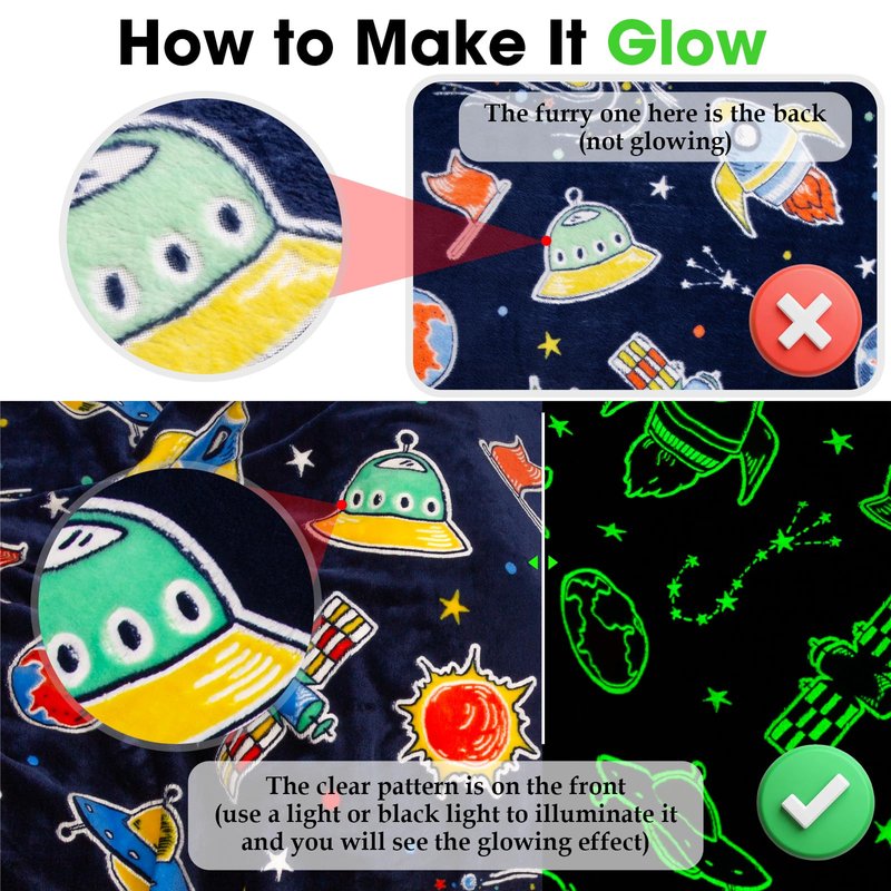 - Multi-Purpose: The glow star planet blanket is brightly colored, with clear fonts and patterns, use for home, sofa, chair, bedroom, living room, car, office air conditioning environment, outdoor travelling camping office, sporting events, and more while reading, watching TV, or chatting.