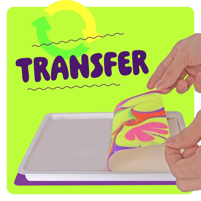• DRIP, SWIRL, TRANSFER, WOW: Explore the easy and mesmerizing process of marbling. Just drip your paint, swirl with our included tools, and transfer your design to capture your glowing creation on paper.