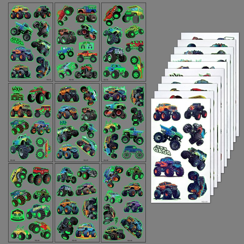 - 【Wonderful Gift】There are around 80 pieces various patterns of luminous monster trucks.It can be a wonderful gift to Car enthusiasts.Make you more happy by simple temporary tattoos.